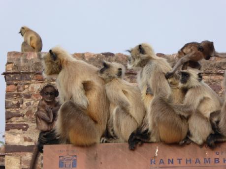 Am Ende stellte sich heraus, dass es ein kleines Missverständnis gab und wir erst um ca. 13Uhr zurück fahren würden...na ja flexibel muss man sein. Also auf geht’s zum schon am Vortag benutzten Jeep, um zu einer Burg in den Nationalpark zu fahren. Eine halbe Stunde später standen wir am Fuße des kleinen Berges, auf dem die Burg erbaut worden war und geschätzte 250 Stufen lächelten uns entgegen. Drei Personen blieben im Jeep, da es ihnen nicht so gut ging. Oben angekommen, konnten wir viele Affen aus nächster Nähe beobachten, da die Burg nicht nur uns (mit sagenhaften Ausblicken über den Nationalpark) für sich gewonnen hatte. Am Ende des Rundgangs hatten wir Gelegenheit, uns zwischen freilaufenden Affen und Ratten ein Getränk oder Schmuck in einem kleinen Ort auf dem Hügel zu kaufen.