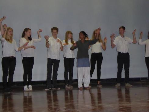 Die Nacht war sehr unruhig und kurz. Als wir um 01:00 in unserem Schlafsaal angekommen waren, erwarteten uns indische Austauschuelerinnen. Sie arbeiteten an einem Projekt und sind eingezogen, als wir uns auf den Weg nach Jaipur machten. Die Maedchen schienen im Gegensatz zu uns leider noch sehr wach und munter zu sein. Erst gegen 02:00 schalteten sie das Licht aus und gingen schlafen. Ungluecklicherweise mussten sie am naechsten Morgen frueher als wir aufstehen - 1,5 Stunden frueher. Daher wurden wir um 06:00 unliebsam aufgeweckt. Die Inderinnen waren schon sehr fit, lachten froehlich, stuermten den Gang entlang und schmissen die knarrenden Tueren. Gerade als wir aufstanden, gingen sie weg. Beim Fruehstueck angekommen, gab es wieder das typische Essen, allerdings diesmal fuer indische Verhaeltnisse normal gewuerzt, da die Austauschschuelerinnen sich ihr gewohntes Essen wuenschten (Fuer unseren Aufenthalt wurde das Essen extra weniger gewuerzt). Heute mussten wir Berichte zu unseren Ausfluegen schreiben, bevor wir Mittag assen. Danach hatten wir 3 Stunden Freizeit, die wir nutzten, um unsere Aufgaben zu machen und uns auszuruhen. Das Abendbrot war das Uebliche – Reis und einige Currysaucen. Etwas spaeter gingen wir dann in den Projektraum, um noch ein bisschen am Projekt zu arbeiten. Gegen 21 Uhr liefen wir dann zu unserem Schlafsaal und schliefen schon bald ein.