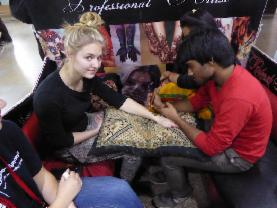 Kaum zu glauben aber in der Mall, die wir im Anschluss besuchten, gab es erneut ein McDonalds. Wir stürzten uns auf die Mc Flurrys, um gestärkt das indische Einkaufsparadies in Augenschein zu nehmen. Dort haben sich viele Mädchen Henna Tattoos auf die Arme malen lassen. Um zurück auf das Hochplateau unseres Schulgeländes zu gelangen, mussten wir tatsächlich den Bus wechseln, da der Anstieg so enorm war, dass unser „Liegewagenexpress“ gescheitert wäre. Wieder zurück in der Scindia, machten wir uns noch einmal an unsere Projektarbeit und analysierten den Gebrauch von Pflanzen in der deutschen und indischen Küche, um Unterschiede und Gemeinsamkeiten herauszuarbeiten. Dafür wurden wir beim Abendessen mit einem leckeren Dessert honoriert: Schokoeis! Was für eine Alternative zum scharfen Curry!!!